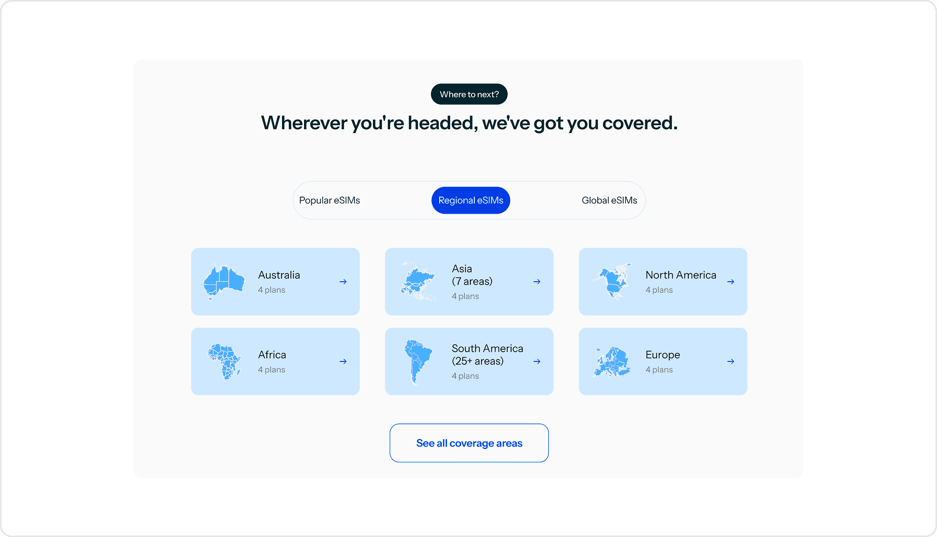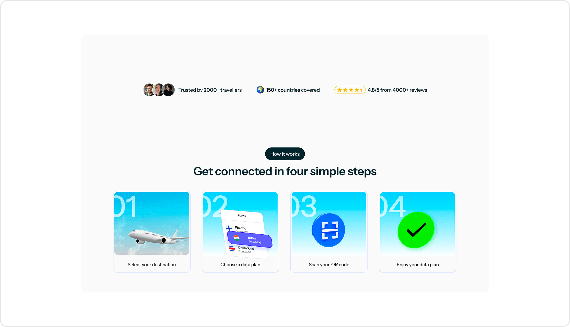 Users needed to understand eSIM technology within minutes, find a faster purchase path when they knew their destination, and have their questions answered before asking them.