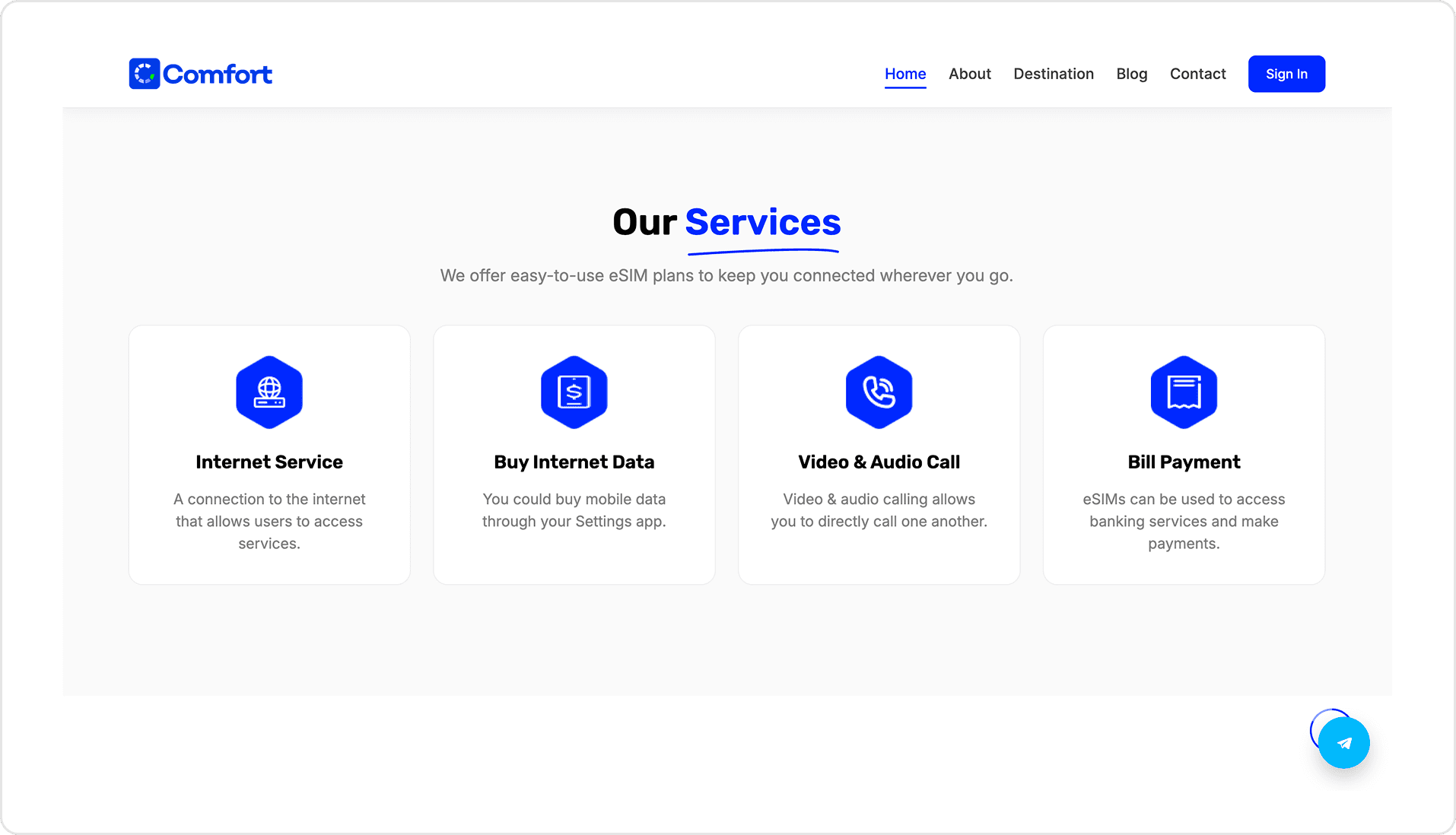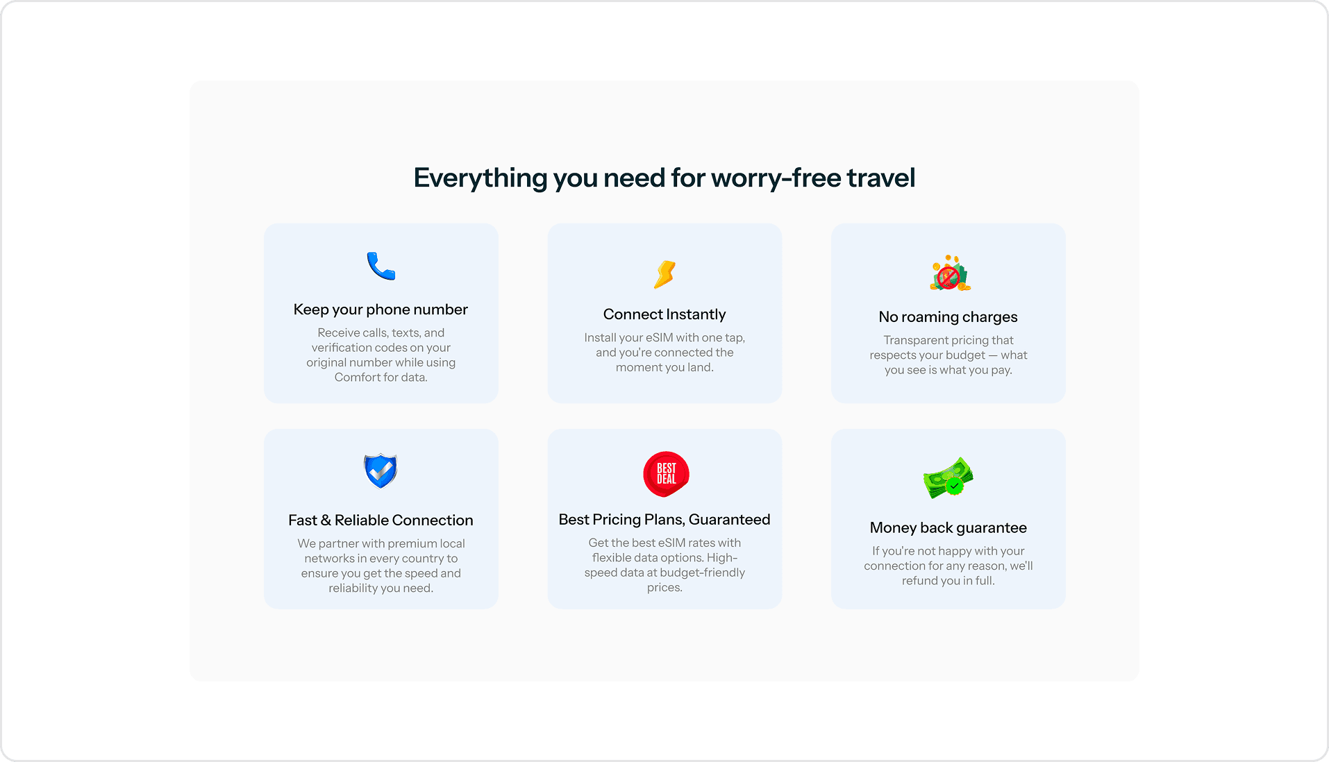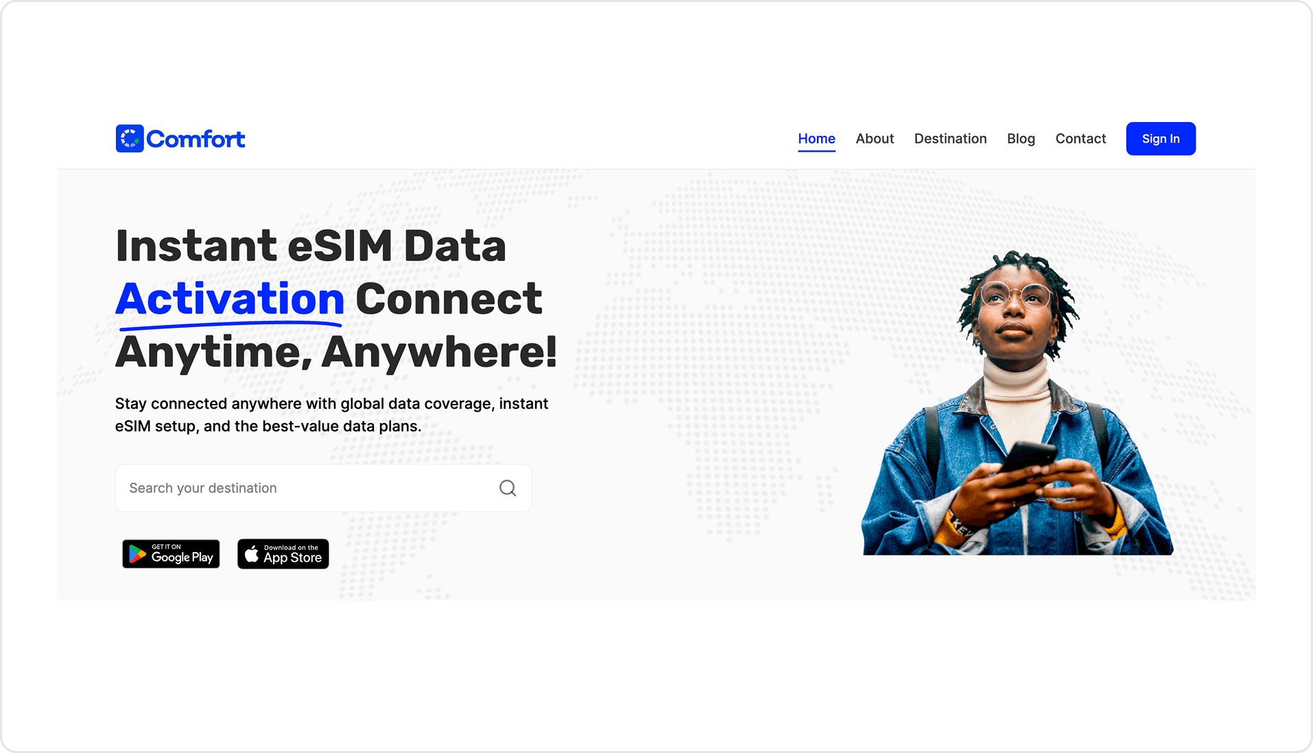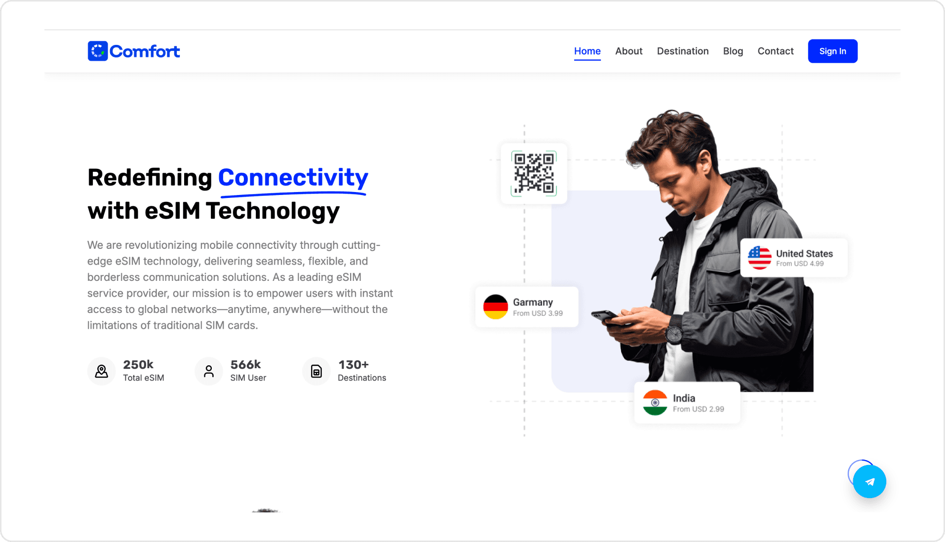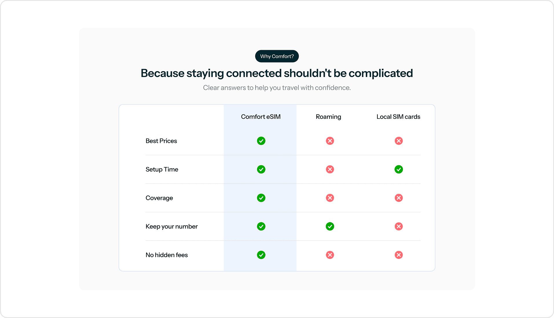 Tailored messaging on the benefits you get when you choose Comfort’s eSIM