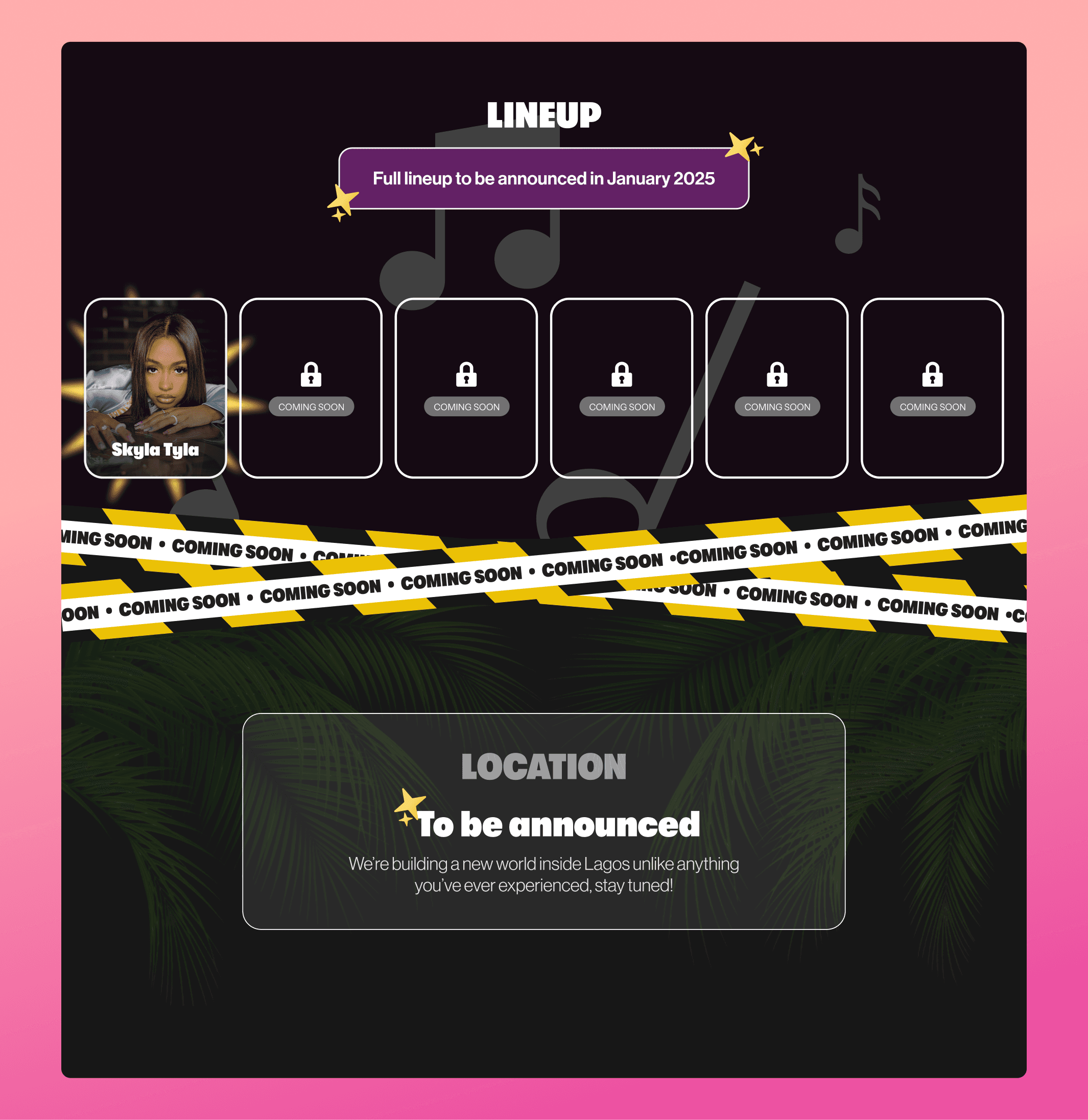 The lineup unveiled artists progressively through visual photo cards, building anticipation and encouraging repeat visits as the festival approached.