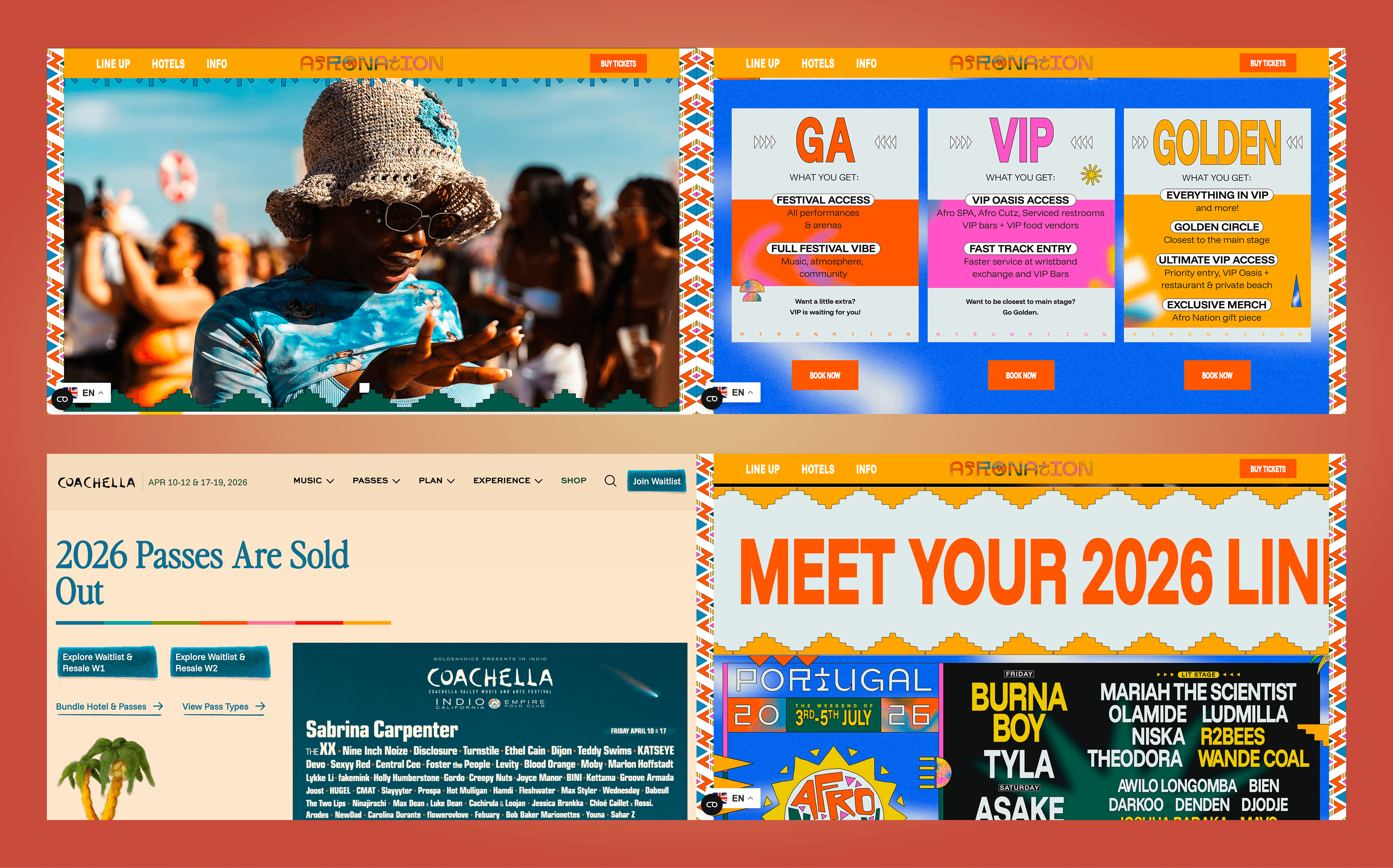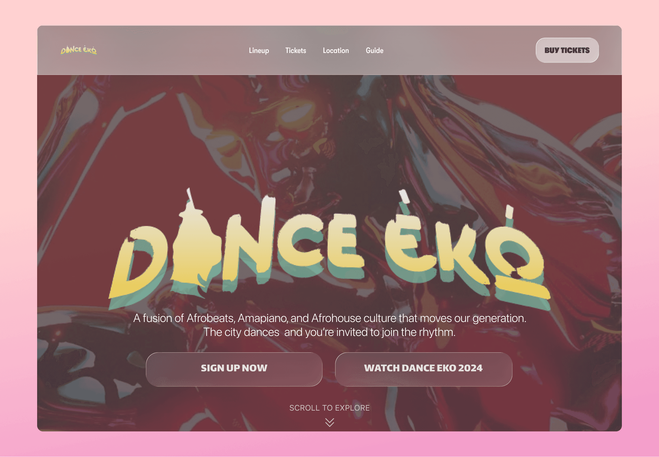 Dance Eko drew inspiration from Afro Nation and Coachella—bold, festival-forward experiences. They needed ticket flows, lineup displays, event logistics, and contact information, unified by an energetic, inclusive brand personality that felt unmistakably Lagos.