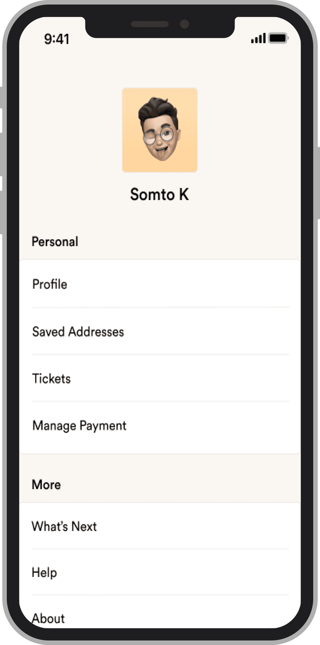 Users can update their profile, manage payment details for ticket purchases, view purchased tickets, add or remove addresses, and learn more about the app.